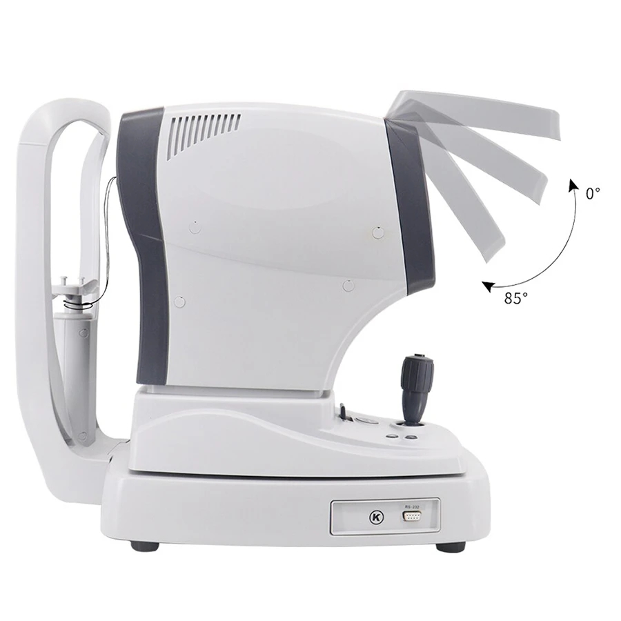 ARK-1500 features a 7-inch TFT LCD screen for clear display, a motorized joystick for easy control, and a motorized chinrest for better patient comfort. The tilting screen and auto-focus function help streamline eye examinations, while the built-in thermal printer allows quick result printing.
