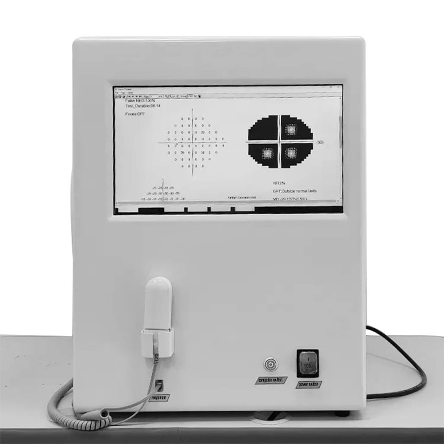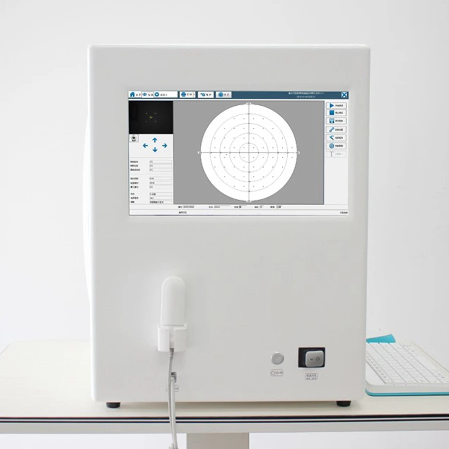 BIO-1000 visual field analyzer is a static perimetry test machine. It features real-time monitoring of gaze, head position, and physiological blind spots. Automatic pupil diameter measurement reduces pupil-related effects. The system uses professional clinical analysis for accurate, fast testing and follows the international Goldman standard with multiple classic test procedures and detailed report analysis.It provides important reference data for glaucoma diagnosis.