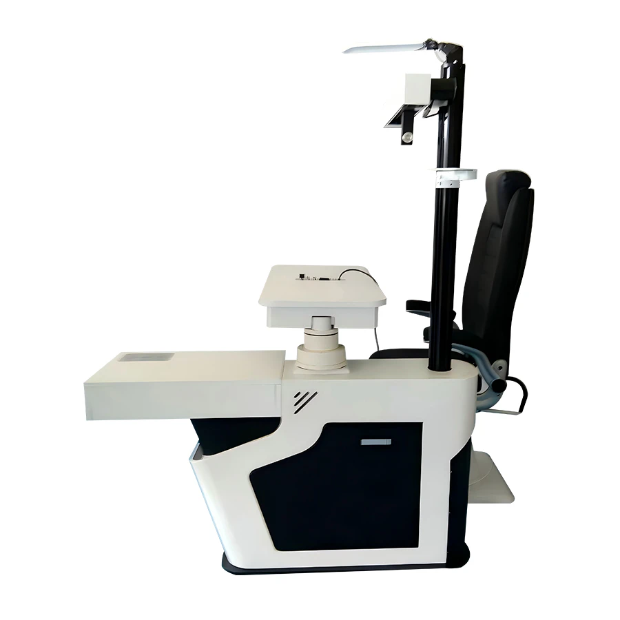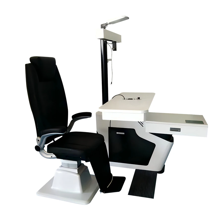It supports multiple instruments, including auto refractometer, auto phoropter, slit lamp, auto lensmeter, and trial lens set, with a built-in drawer for convenient storage. Wireless control is available via operation panel, mobile device, or tablet.