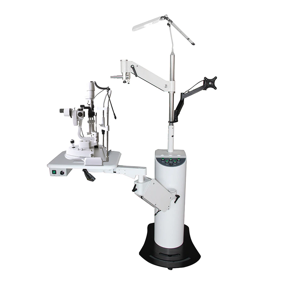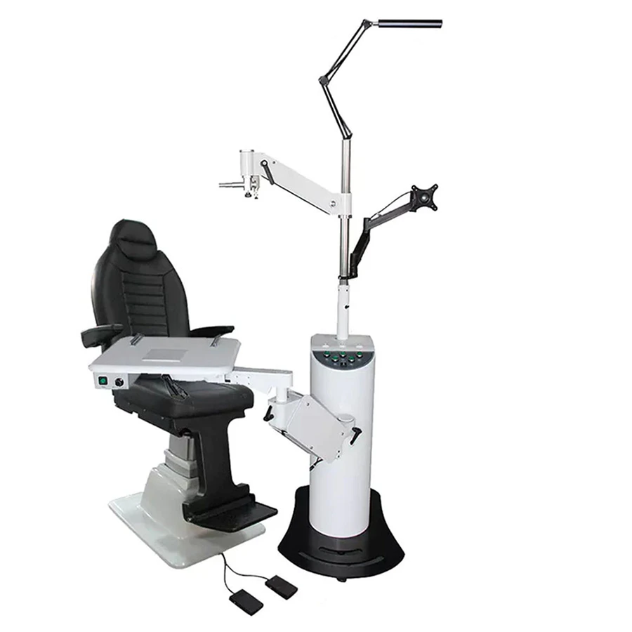The CT-600 automatic ophthalmic unit is an American-style ophthalmic unit designed for easy operation and flexible instrument setup. The table top rotates and adjusts up and down smoothly, allowing comfortable positioning for patients and doctors.