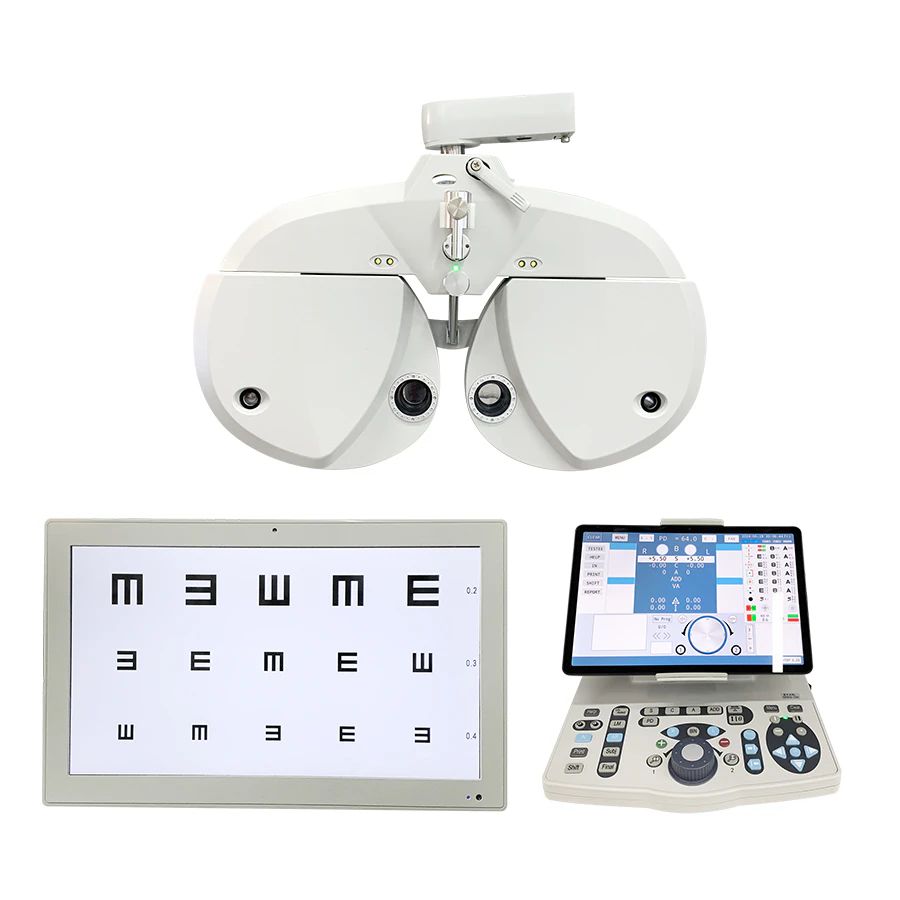 Built for professional clinical environments, the system supports routine subjective refraction, binocular vision testing, and auxiliary lens operation. Its ergonomic structure and adjustable patient support help ensure correct alignment and patient comfort during exams.