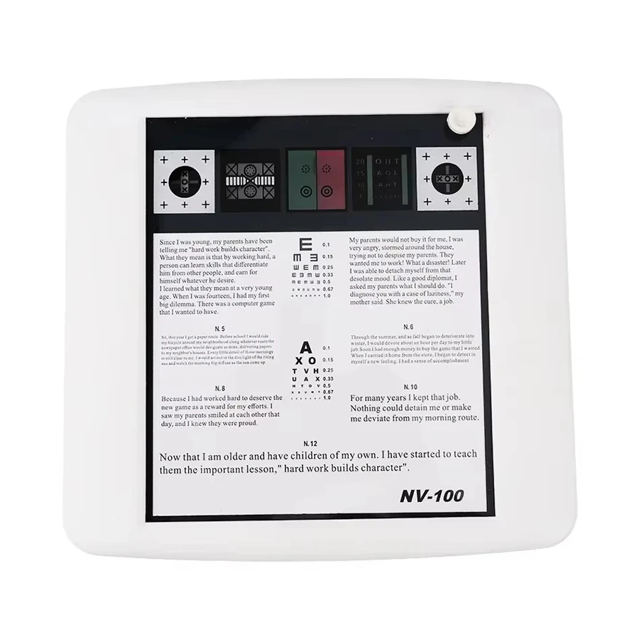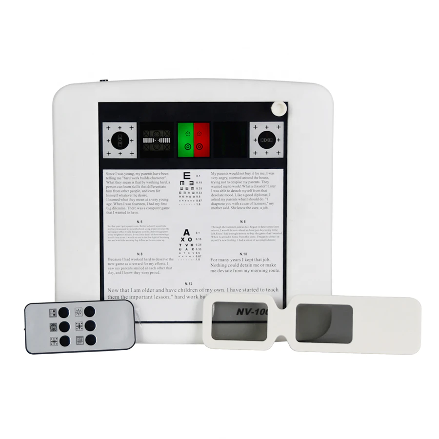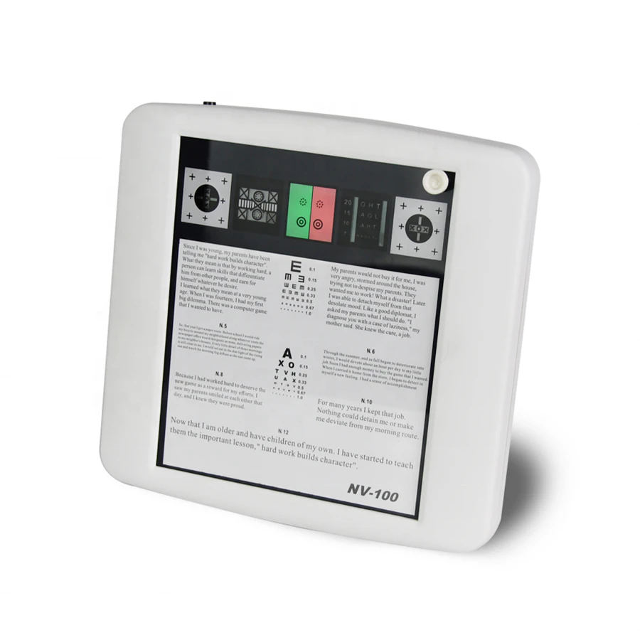 The NV-100 Near Vision Tester is designed for comprehensive near vision and binocular function assessment in optometry clinics and ophthalmology practices. It allows examinations to be performed with the patient’s head and eyes in a natural posture at any working distance, ensuring accurate and comfortable testing.