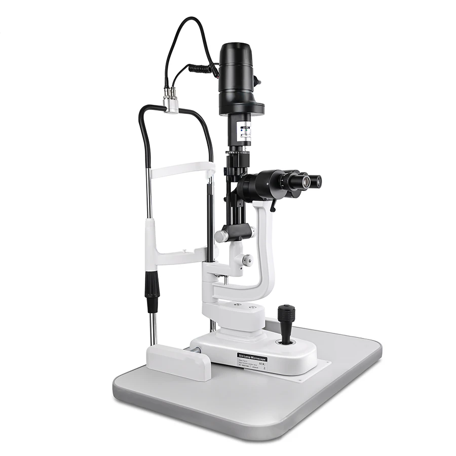 The SL-200A is a compact slit lamp with top halogen illumination and dual magnifications (10X, 16X). It features adjustable slit width and length, multiple diagnostic filters, and an aluminum optical system with moisture-, mildew-, and anti-reflective lenses for clear, stable, and durable performance.