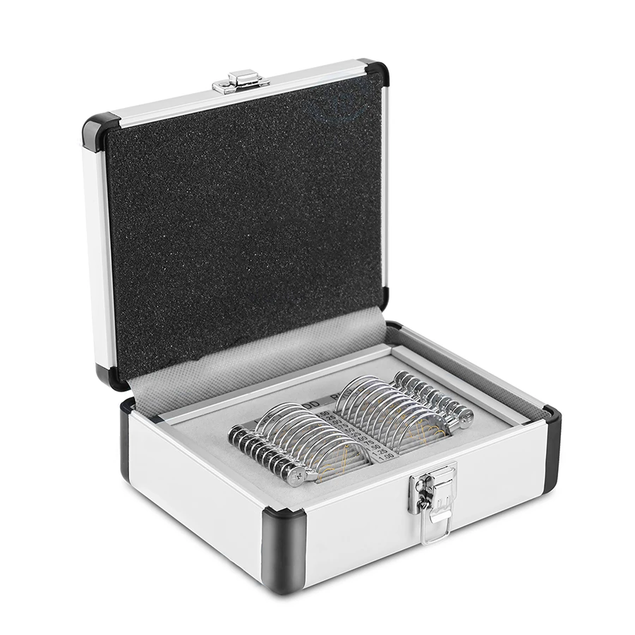 The TLS-22 includes 22 metal-rim lenses packed in a durable aluminum case. Designed for progressive lens testing and optical training, it offers a compact and reliable solution for accurate refraction practice and demonstration.