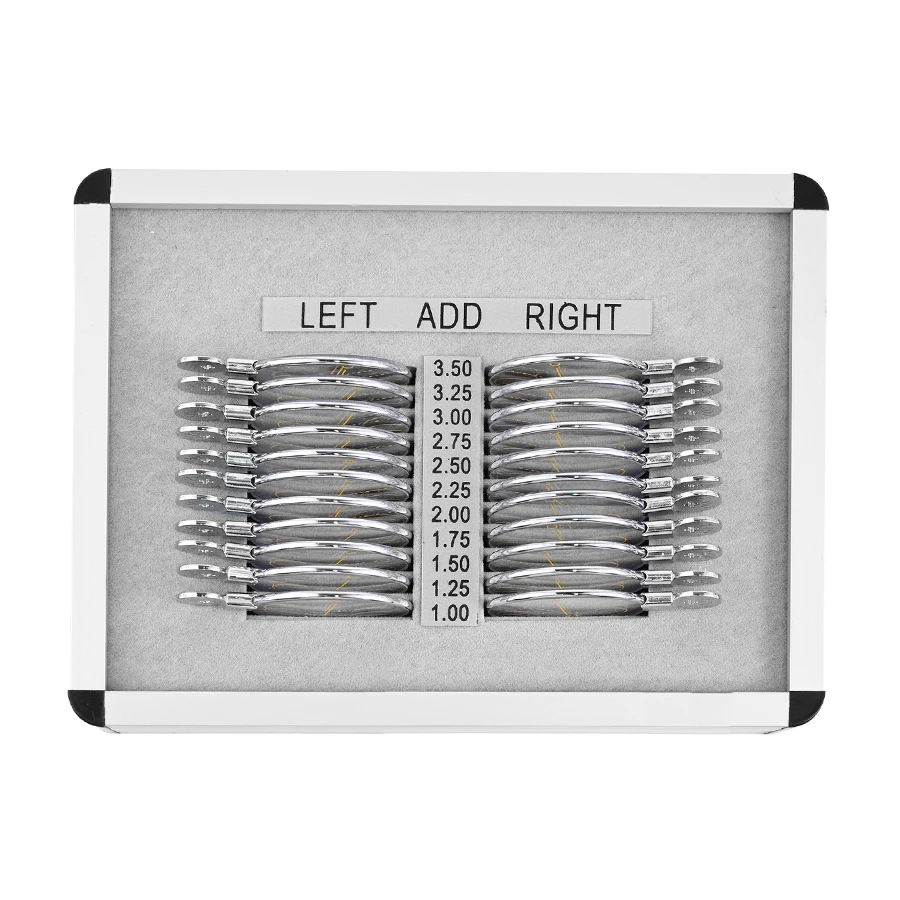 The built-in progressive lenses provide a ready-to-use kit for testing, teaching, and refraction practice. With 22 lenses organized in a compact layout, it allows fast switching and efficient demonstration for optical shops, clinics, and training environments.