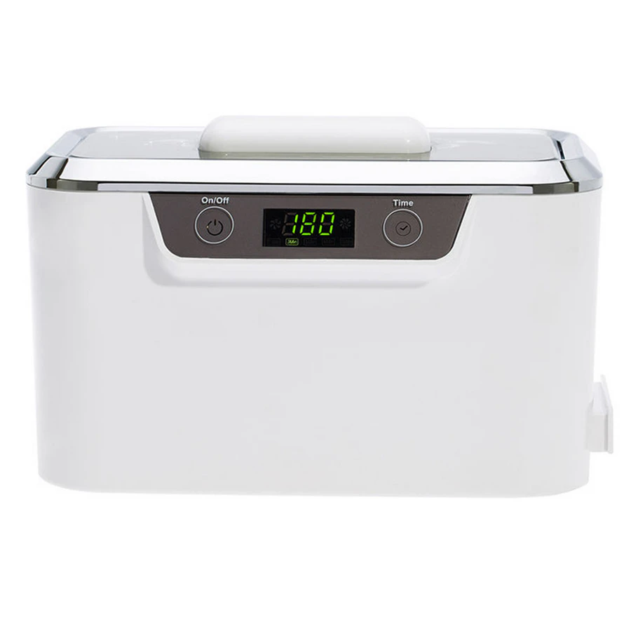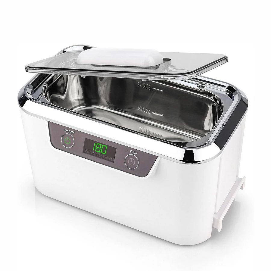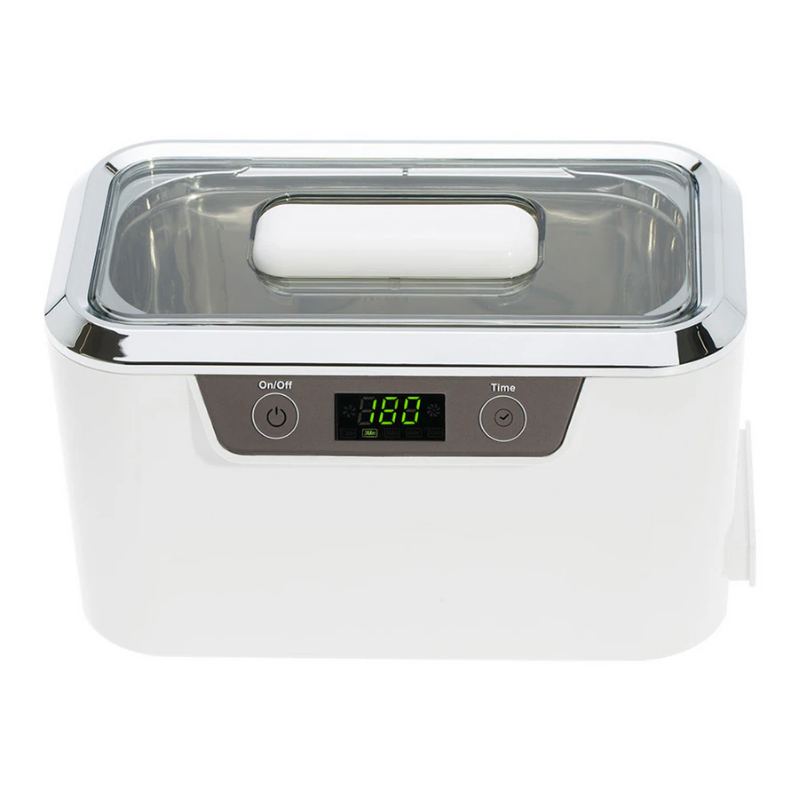 Stainless steel cleaning tank and a digital timer with multiple preset options allow for precise control of the cleaning cycle.