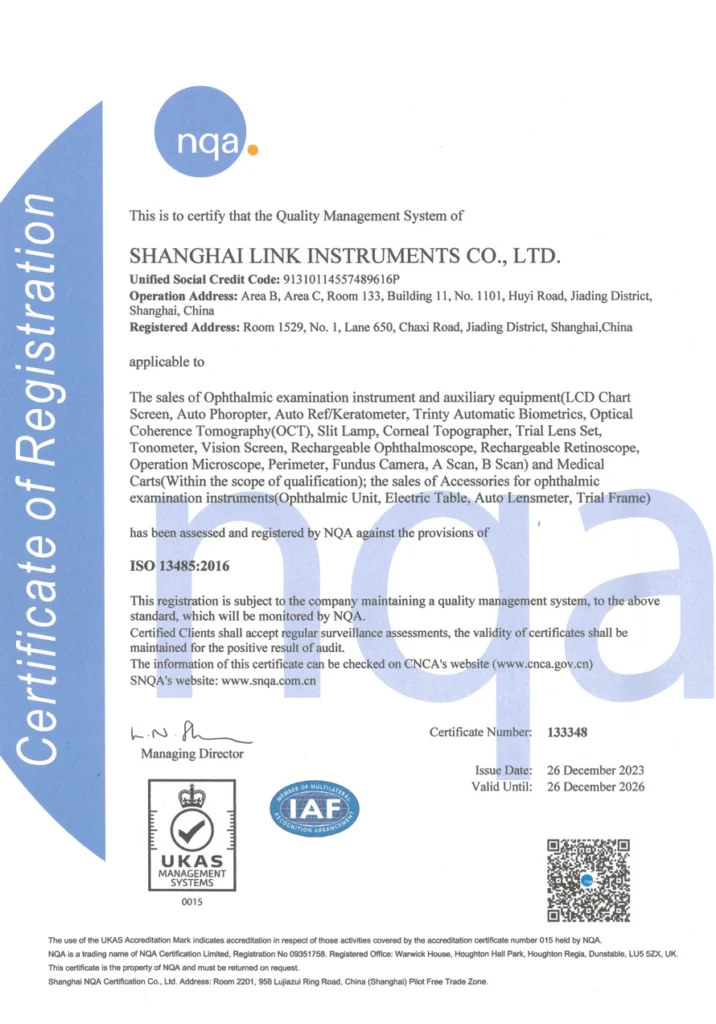 At LINK, every ophthalmic instrument is built under strict ISO quality management and certified by CE and FDA standards. We promise to provide our partners with reliable products and lifelong technical support.